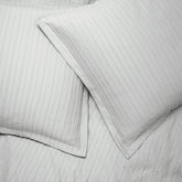 Mila Matelassé Shams have a detailed textured stripe on top, and a crisp, cool percale reverse. The elegant monochrome striped texture adds a chic and effortless style to your room.